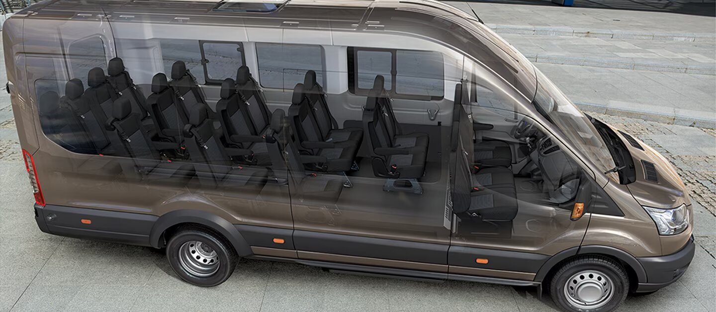This model is widely recognized within the passenger transport industry for its intelligent use of space. Unlike other vehicles in its category, the Ford Transit offers class-leading interior height, allowing passengers to move and access their seats with total ease—a feature highly appreciated after a long flight or during a busy day of sightseeing. All 16 seats are designed to ergonomic standards, providing excellent support and ample legroom, ensuring that every member of the group travels in comfort.